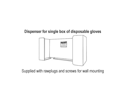 Glove dispensers in single size and triples, for different size gloves (i.e: small, medium, and large).